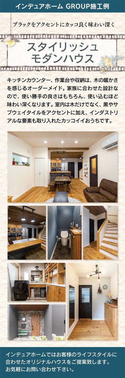 ヴィンテージスタイル、カリフォルニアスタイル、フレンチスタイル、プロヴァンススタイル、アメリカンスタイル、モダンスタイルの家のことなら、私たちインデュアホーム長崎中央が、こだわりの住宅を自信をもって心を込めておつくりします。自然素材の塗壁や、無垢のフロアーなどをふんだんに使用して、高性能でエコな住まいづくりを心がけています。新築(注文住宅)・リノベーションのお問い合わせは、お気軽にインデュアホーム長崎中央までご相談下さい。