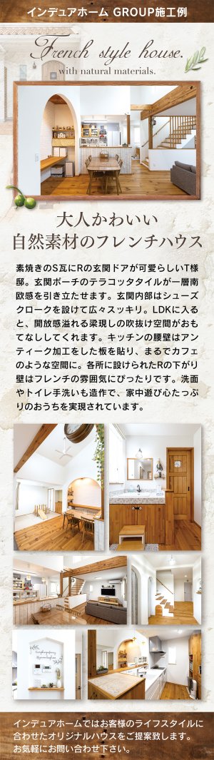 ヴィンテージスタイル、カリフォルニアスタイル、フレンチスタイル、プロヴァンススタイル、アメリカンスタイル、モダンスタイルの家のことなら、私たちインデュアホーム長崎中央が、こだわりの住宅を自信をもって心を込めておつくりします。自然素材の塗壁や、無垢のフロアーなどをふんだんに使用して、高性能でエコな住まいづくりを心がけています。新築(注文住宅)・リノベーションのお問い合わせは、お気軽にインデュアホーム長崎中央までご相談下さい。