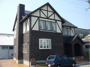 ヨーロッパテイスト溢れるブリックタイルを全面に施した、ブリティッシュスタイルの個性的外観